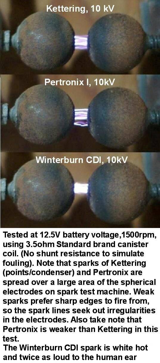 *(One popular manufacturer of CD ignitions claims a very high voltage output, but actually has a low voltage product with a weak, short duration spark, for which its abilty to multi-spark can't compensate for, based on my testing)